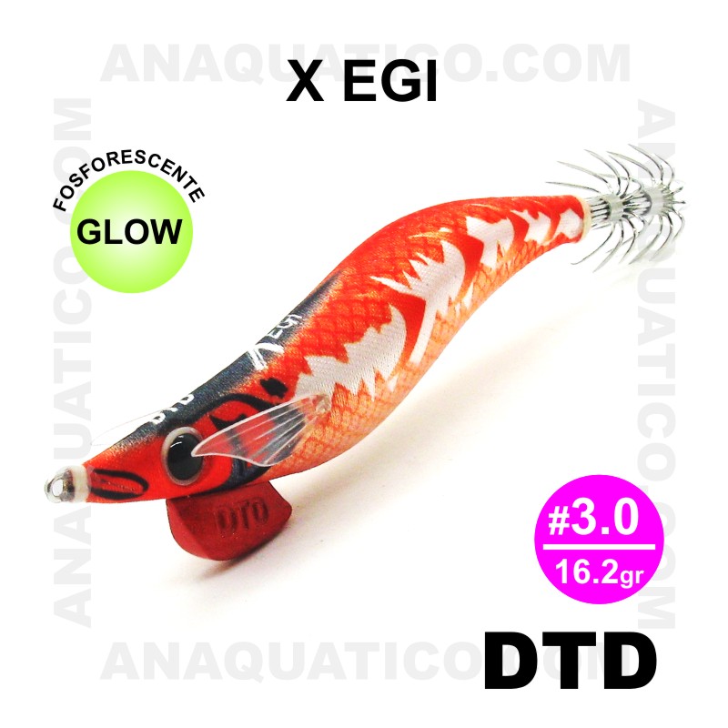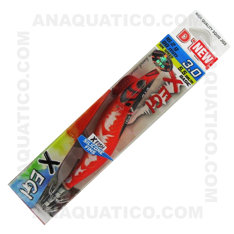 X egi é uma toneira (palhaço) para pesca a lula e chocos com um design notável e marcante e um forte padrão lateral branco. Este padrão tem um efeito de brilho mais forte do que o resto do corpo. As cores também são reativas aos raios ultravioleta.